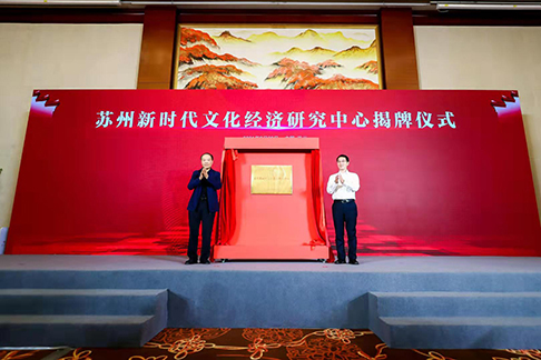 中国政策科学研究会会长,中共中央政策研究室原主任、中共中央文献研究室原主任腾文生、苏州市委副书记、代市长吴庆文共同为苏州新时代文化经济研究中心揭牌